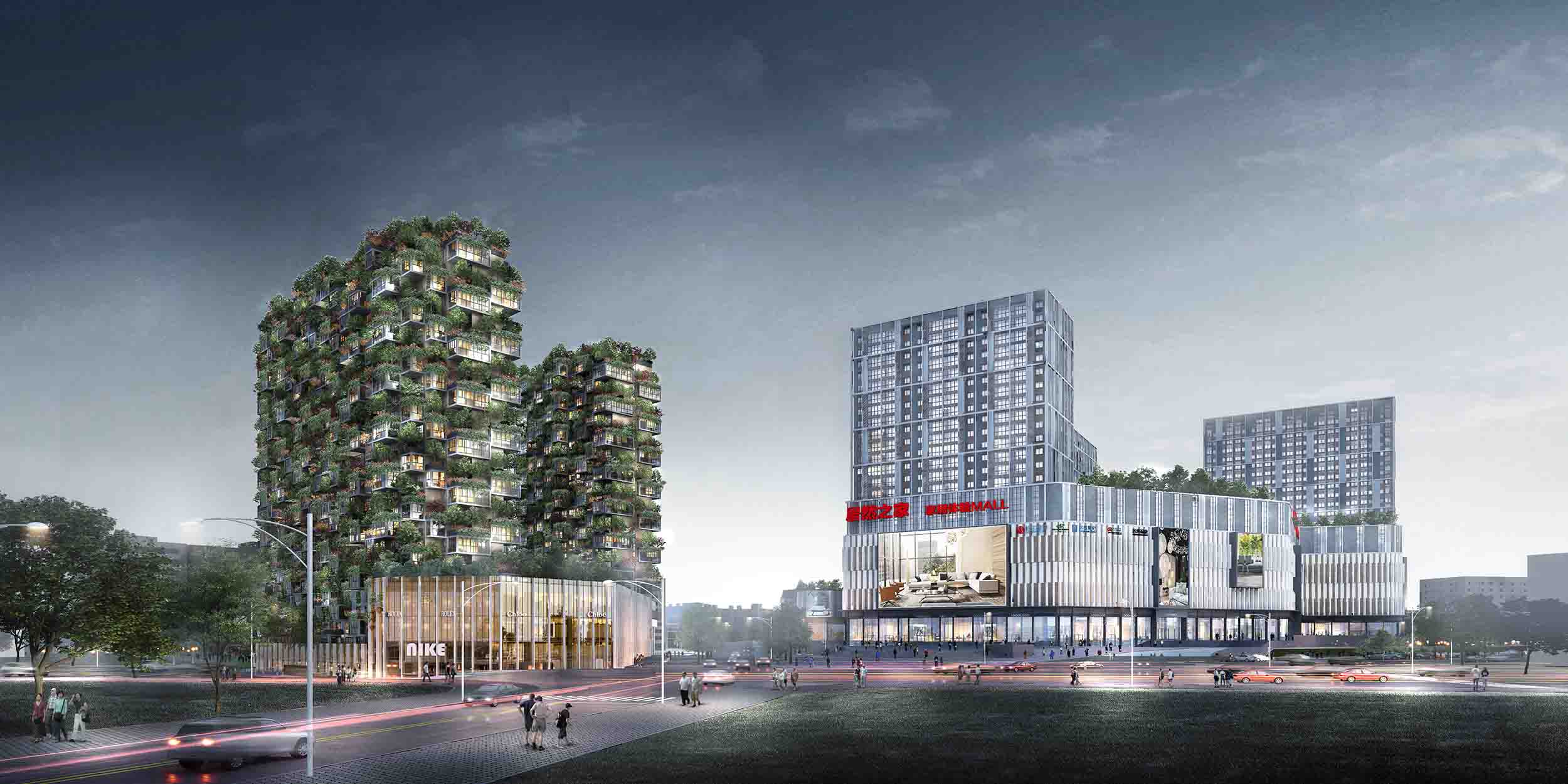 该项目土地面积45418.75㎡。总建筑面积约(含不计容面积)214938.3㎡;总投资100000万元;。其中计算容积率建筑面积158728㎡、不计算容积率建筑面积56210.3㎡、地上建筑面积156830.3㎡,地下建筑面积58068.0㎡,最高建筑的建筑高度为80米;地下一至二层。旨在以绿色建筑的整体概念与设计,打造一个集新体验零售MALL、特色商街、垂直森林住宅、公寓、普通住宅于一体的城市综合体项目。