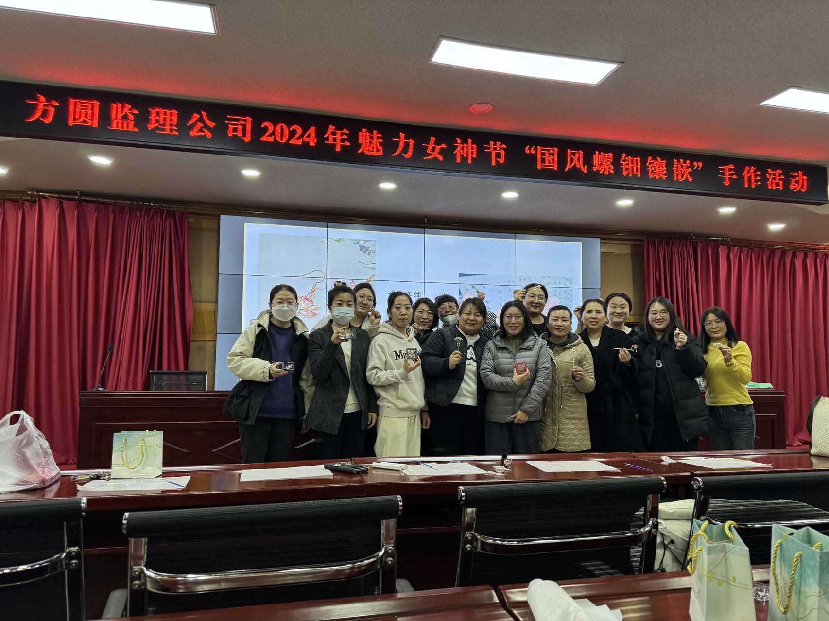 三月沐风,春回律转,第114个“三八”国际妇女节如约而至。在这美丽的季节里,方圆监理公司工会于3月8日下午在公司西五楼会议室精心策划了2024年魅力女神节“国风螺钿镶嵌”手作活动,向女职工送去了节日的关怀和祝